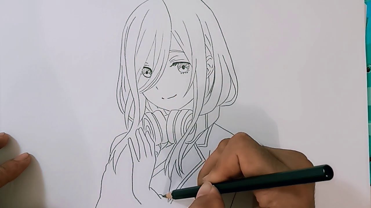 CARA MENGGAMBAR ANIME CEWEK || NAKANO MIKU || GOTOUBUN NO HANAYOME …